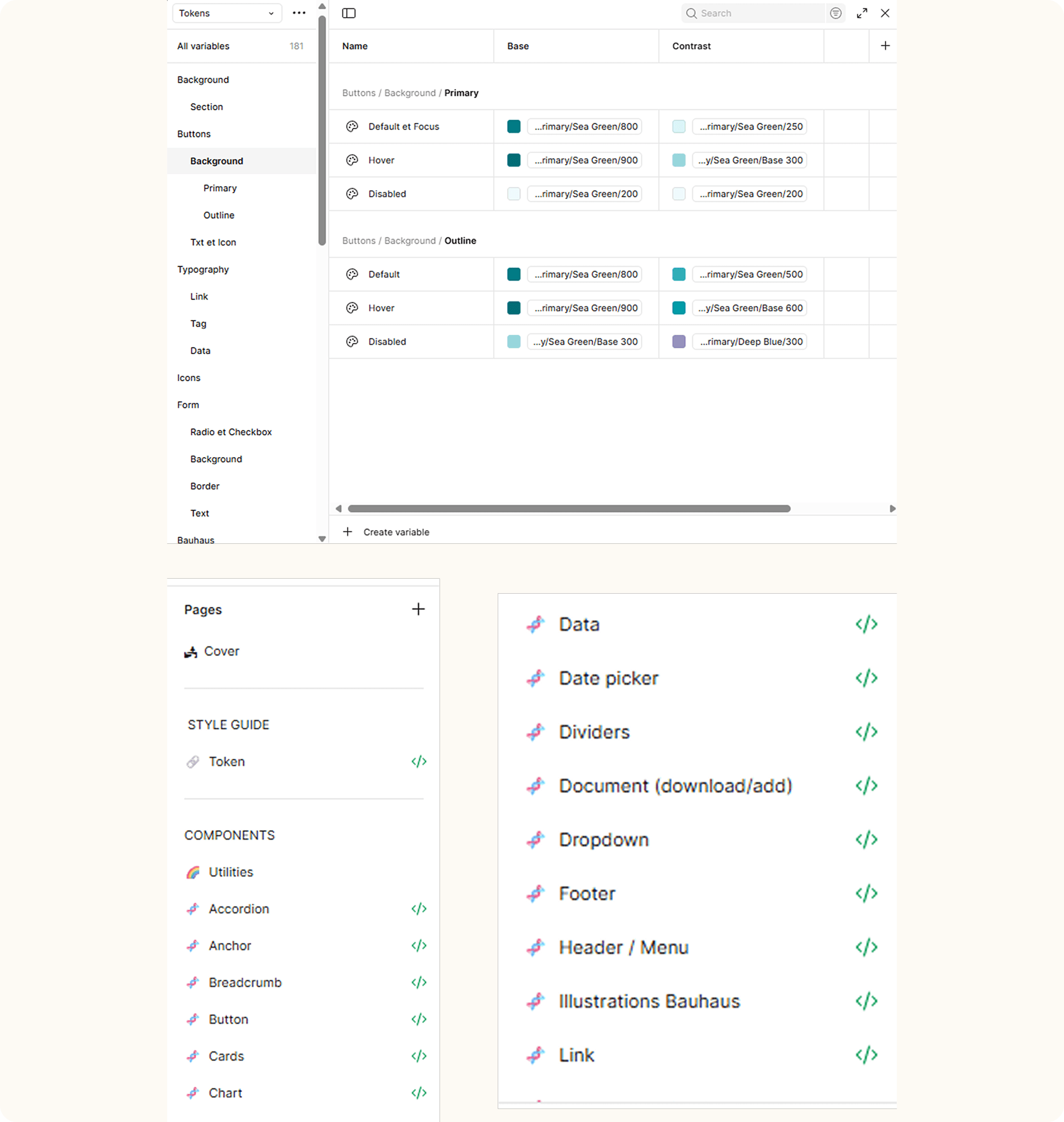 En tant que référante Figma de l’équipe, j’ai pris en charge la conception, la gestion et la documentation du Design System en autonomie.